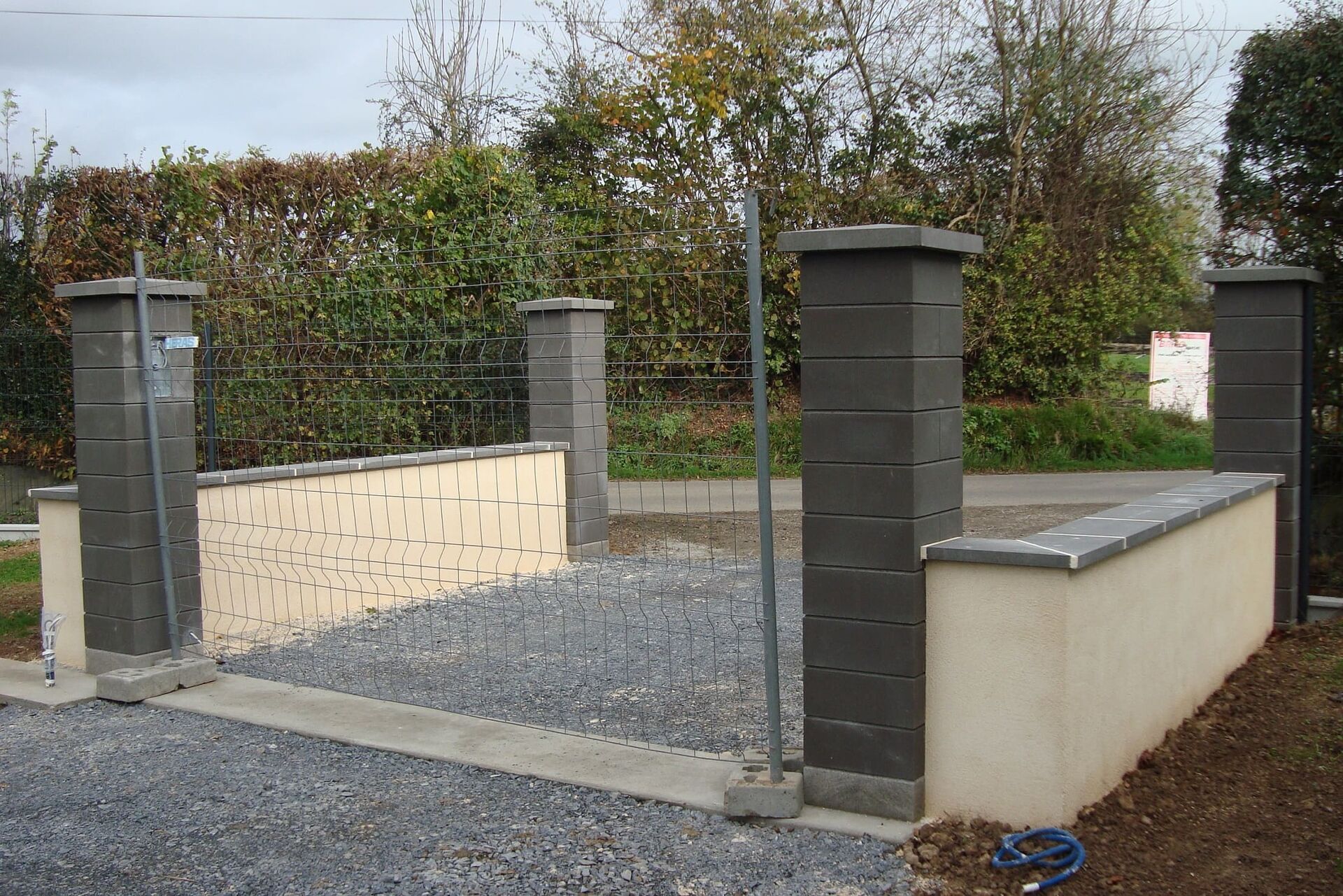 Nous effectuons l'élévation de murets en parpaings avec enduits de finition ou la mise en œuvre de piliers maçonnés pour structurer élégamment vos accès.