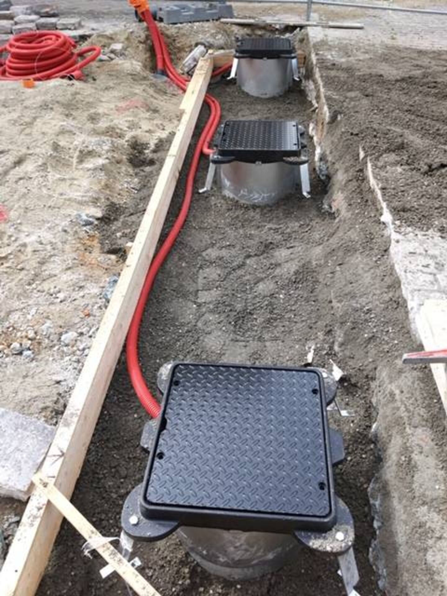 Afin de gagner du temps et d'avancer selon votre projet, suite à ça, nous profitons de cette réalisation pour passer les gaines utiles à la motorisation et aux accessoires de commandes.